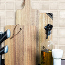 Krájecí a servírovací prkénko z akátového dřeva s rukojetí a šňůrkou z PU kůže.