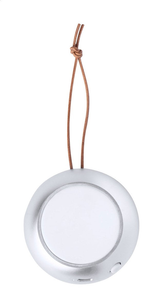 Bezdrátový reproduktor z recyklovaného hliníku s bambusovou síťovinou a popruhem z PU kůže. S vestavěnou dobíjecí baterií. Včetně nabíjecího kabelu USB.