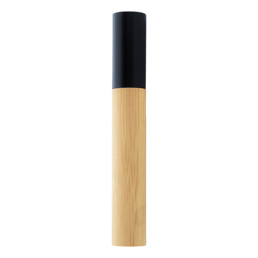 Elegantní černé kovové kuličkové pero s bambusovým tělem a černými částmi. V pouzdře z bambusové tuby s černým uzávěrem. S modrou náplní.